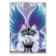 Card featuring Lucy Fairy Cat by Michaeline McDonald of a cute little white cat with black stripes and big blue eyes and glowing blue and purple wings. See more of Michaeline's art at www.wisetailsart.com. Artwork copyright © Michaeline McDonald.
