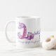 Decorated hand drawn letter with your own name beginning with L and name meaning mug. Pretty heart and flower capital L doodled typographic design featuring hearts and flowers and the words Lucy Bringer of light. Dazzling & adorable in pink and purple. © Unique art and design by Sarah Trett. www.sarahtrett.com for www.mylittleeden.com on zazzle