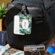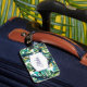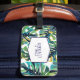 This luggage tag is shown in a lovely tropical palms print.