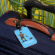 Quality Luggage Tag with an original german Design. A happy Oktoberfest man in traditional Lederhosen outfit with his Dachshund Dog. Text elements are fully editable for your own message. Illustration by Frank Ramspott, Munich, Germany.