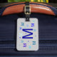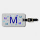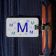 Initial of your choice will be replicated in various sizes and shades of blue. The reverse side allows 2 lines of personalization for contact numbers (e-mail, phone, etc.)