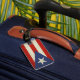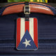 Luggage tag with dirty flag from Puerto Rico. We change and add both text and colours, as well as size and placement, all upon request. Contact us with your unique needs and we do the rest!