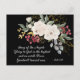 Inspirational quote scripture Christmas postcard depicts an elegant floral watercolor with white roses, red berries, gold flowers and greenery on a black background. It features Bible Verse Luke 2:14, Song of the Angels: "Glory to God in the highest and on earth, Peace, Goodwill toward men.”