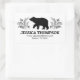 A rectangle wilderness bear return address label. It features a woodland bear and forest foliage.