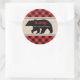 Lumberjack boy birthday party favour sticker with a bear icon personalized with your child's name & birthday message.