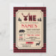 Tourner une invitation de bûcheron. Impression de chèques rouge et noir.