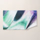 Dessin de dunes avec un effet sculpté ou sculpté et avec des taches vertes et bleues à des taches lilas se décomposant graduellement en blanc, rappelant ainsi une pièce métallique mate.