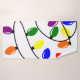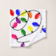 Ce set de serviettes a un design de Noël de lumières enchevêtrées en rouge, bleu, jaune, vert, rose et violet.
