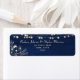 Elégant, moderne, rustique bois bleu marine mariage de retour d'adresse label avec faux or de dentelle florale et des lumières à cordes.