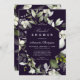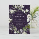 Cette invitation à la douche botanique à la nuptiale présente un cadre élégant encadré par un feuillage d'hiver verdoyant et des brindilles aux baies sauvages blanches et des lampes à cordes brillantes sur un arrière - plan violet foncé. Cette invitation exquise pour une soirée de douche nuptiale élégante.