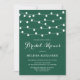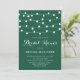 Elégante et fantaisiste invitation de douche nuptiale avec lumières de fée pendantes blanches sur arrière - plan vert émeraude. Cette invitation est parfaite pour les événements nautiques et extérieurs.