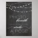 Lumières de fête rustiques sur un panneau d'arrière-plan de tableau avec "Prenez un accessoire et frappez une pose" Panneau de mariage. Ajoutez une touche spéciale à votre mariage, plus de panneaux de mariage dans notre boutique ! http://www.zazzle.co.uk/designbyredline