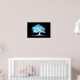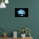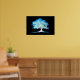 decorative mixed media artwork of a bright shining blue tree in the dark black night as a decorative poster print