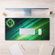 Une fusion dynamique de rayures dorées et turquoises crée un sentiment fascinant de mouvement et d'énergie, rayonnant de chaleur et de profondeur dans un flux abstrait.
