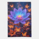 Immerse yourself in the ethereal beauty of this vibrant art print featuring a luminous blue and purple lotus flower, surrounded by glowing orange butterflies and lush foliage. The dark background enhances the vivid saturation of the flower, while soft lighting and swirling light elements create a mystical, dreamlike atmosphere. Perfect for adding a touch of serenity and magical allure to your home decor.