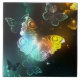 Night glowing butterflies on black abstract background. Luminous Butterfly.