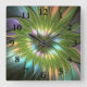 Luminous Colourful Fantasy Flower Fractal Art Square Wall Clock