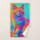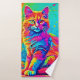 Luminous Feline: Colourful Neon Cat Bath Towel Set