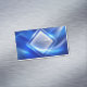Project a powerful and futuristic image with this luminous and dynamic business card. The design features a brilliant, glowing central emblem with a sharp, beveled diamond frame in a polished silver and white metallic finish. This strong, logo-like focal point is surrounded by abstract waves and ribbons of luminous light that flow gracefully against a rich, deep royal blue background. The overall effect is one of energy, motion, and high-tech sophistication, perfect for a forward-thinking brand.