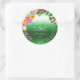 Make a lasting impression with this lovely and elegant monogrammed product label design featuring many different colourful flowers on a luminous green gradient background with a shimmery frame.