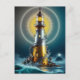 Luminous Lighthouse Amidst Waves Postcard