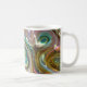 Turn every coffee break into a glowing art experience with this luminous liquid glass abstract mug. Waves of yellow, teal, green and magenta melt and swirl together like colored glass under light, creating hypnotic rings and flowing curves that draw the eye in.