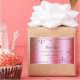 Make a lasting impression with this elegant and modern product label design featuring pretty squiggled ornate corners with cute hearts on a luxury shimmery pink and green gradient background.