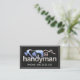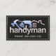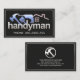 A stylish faux silver frame envelopes a dark grey cover that has a silver handyman tools design. Near the base of the card lies your phone contact details.