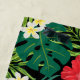 Red, Evergreen, Lime, Yellow and Black colorway. Hibiscus and plumeria flowers dance over a backdrop of monstera and palms leaves. These flowers are commonly used in apparel for aloha shirt and muu muus creating a design reminiscent of the Hawaiian prints of the 50s and 60s. Great for home decor for that beach house. This design comes in several colour ways.