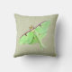 Parchment coloured throw pillow with a soft green Luna moth illustration.