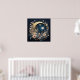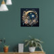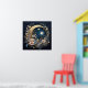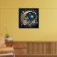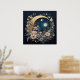 "Lunar Garden Wreath" is a breathtaking design that combines celestial and botanical elements. A beautifully ornate, golden crescent moon cradles a bright full moon and a star-filled sky. The scene is encircled by a lush, flourishing wreath of delicate blue, cream, and pink flowers, creating a truly magical and elegant poster.