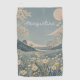 A tranquil scene unfolds: a vast meadow blanketed in daisies, painted in delicate pastels, extends toward a majestic mountain range capped with snow. A luminous full moon, defying expectations, graces the daytime sky. Did you know the moon's surface is covered in a fine dust called regolith, a testament to billions of years of cosmic collisions? This ethereal landscape invites contemplation and wonder, capturing the rare beauty of a daytime moon.