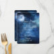 Lunar Sky Full Moon Celestial Galaxy Watercolor Design, with Night Shining Stars, and Glowing Moon Design on a luxurious Navy Blue, Pale Blue, and hints of purple watercolor texture. With Modern Typography Script Fonts. A trendy Magical design - Personalized Wedding Dinner Reception Table Decor Menus!