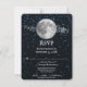 Send guests a simple and elegant Lunar Wedding RSVP Card with your invitation. RSVP card design features a starry night sky adorned with a full moon and star cluster trail. Personalize with the response date and menu choices. Additional wedding stationery available with this design as well.