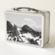 Photo en noir et blanc du Mont Rainier avec une chaîne de montagnes accidentée au premier plan. Copyright ©2023 Kimberly J Tilley. zazzle.com/store/developingnature