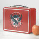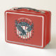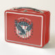 Obtenez un look classique et intemporel avec notre boîte à lunch Aigle Américain Rétro, mettant en vedette les étoiles et les bandes iconiques dans les couleurs patriotiques rouge, blanc et bleu. Nom personnalisable.