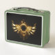 Ailes mécaniques brillantes, avec des engrenages et bannière ronde en laiton. Steampunk