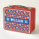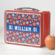 Cette boîte à déjeuner en métal sport avec un motif de sport multi-ball est en mesure d'être n'importe quelle couleur que vous voulez ou vous pouvez garder la couleur rouge/bleu. Dans la zone de personnalisation, vous pouvez changer les rayures et/ou la couleur arrière - plan en couleurs préférées ou en couleurs de votre équipe préférée. Cela peut être une ou deux couleurs. Vous pouvez également rendre le motif de balle de sport et le motif étoilé sur cette boîte à lunch plus grand ou plus petit dans la zone de carrelage. Personnalisez cette boîte à lunch métallique avec un prénom ou un nom de famille et un numéro de joueur. C'est un cadeau amusant à offrir aux amateurs de sport.