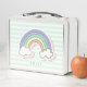 NewParkLane - Boîte à lunch pour enfants personnalisée avec un arc-en-ciel mignon, contre un arrière - plan rayé vert menthe, et un modèle texte pour le nom de votre enfant. Facile à customiser à Zazzle avec votre propre texte pour un design personnalisé. Tous les styles de texte, couleurs, tailles peuvent être modifiés selon vos besoins. Découvrez cette collection pour les objets correspondants ! Avez-vous des souhaits particuliers en matière de design personnel? N'hésitez pas à me contacter !