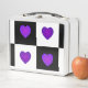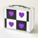 Lunch Box B&W Purple Hearts Beating
