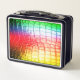 Cette boîte à lunch a des écailles arc-en-ciel sur elle.