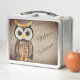 Une chouette aux grands yeux, pièces de bois. Les stries et les veines du bois complètent le design avec élégance ance. Une chouette aux grands yeux, entièrement en morceaux de bois. Les stries et veines en bois complètent le design avec élégance. L'arrière - plan est un morceau de bois et le prénom et le nom personnalisables, sont comme gaufrés.