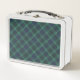 Transportez votre déjeuner dans une boîte à lunch en métal plaid vert à la mode. Vintage avec poignée pliable.