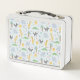 Cette jolie boîte à lunch de garçons bleus présente une girafe et un zèbre, avec un motif animal safari à l'envers (y compris un éléphant, un lion, une girafe, un zèbre, un crocodile et des plantes) et a lieu pour vous d'ajouter votre nom d'enfant dans une belle typographie. Parfait pour votre enfant ou pour le tout-petit retour à l'école. Consultez le reste de notre collection pour d'autres articles pour enfants safari mignons!