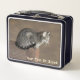 Un chat tabby gris fumé perché sur le bord d'une chaise contre un arrière - plan neutre. Customisez en ajoutant votre propre texte. Vous pouvez modifier la police et la couleur du texte.