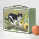 Lunch Box Chat tuxedo mignon sur une branche d'arbre avec de