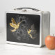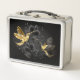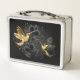 Colibris de bijoux en noir et or sur arrière - plan gris décoré de plantes. Bijoux. Oiseau doré. Oiseau d'or.