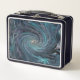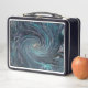 Lunch Box Cool Abstrait rétro noir et Turquoise spirale cosm