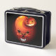 Scary and Creepy Halloween Skull and Jack O'Lantern Pumkin on Black Background. Design copyright BluedarkArt.