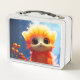 Cette boîte à lunch est agrémentée d'une créature orange.